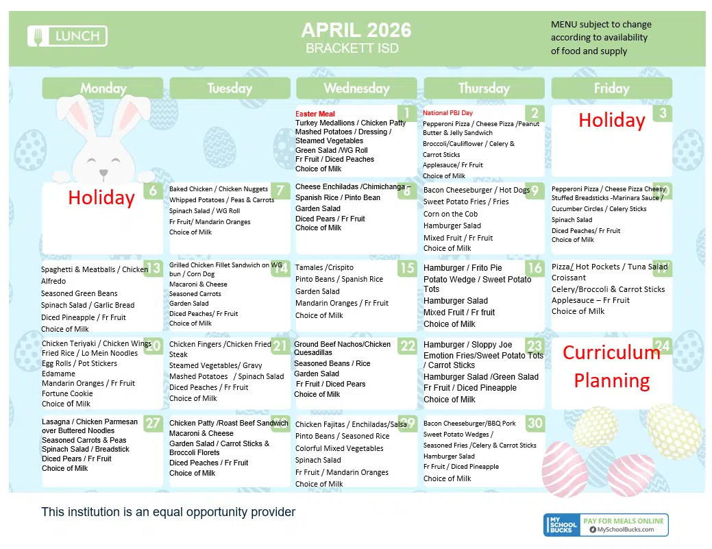 All BISD campuses operate under the Community Eligibility Program (CEP), which means breakfast and lunch are provided at no charge to every student in grades PK–12